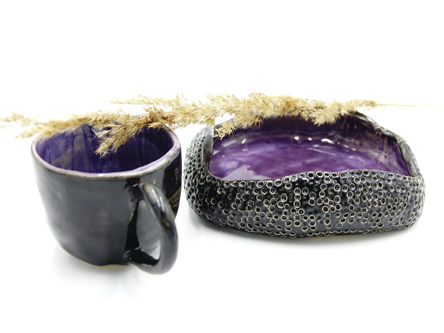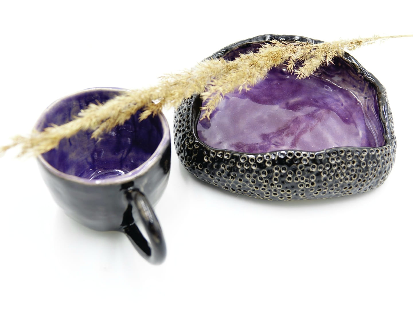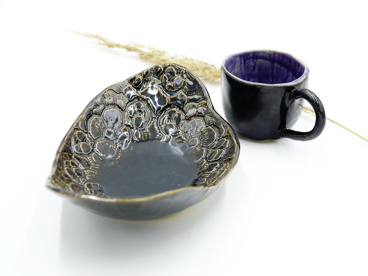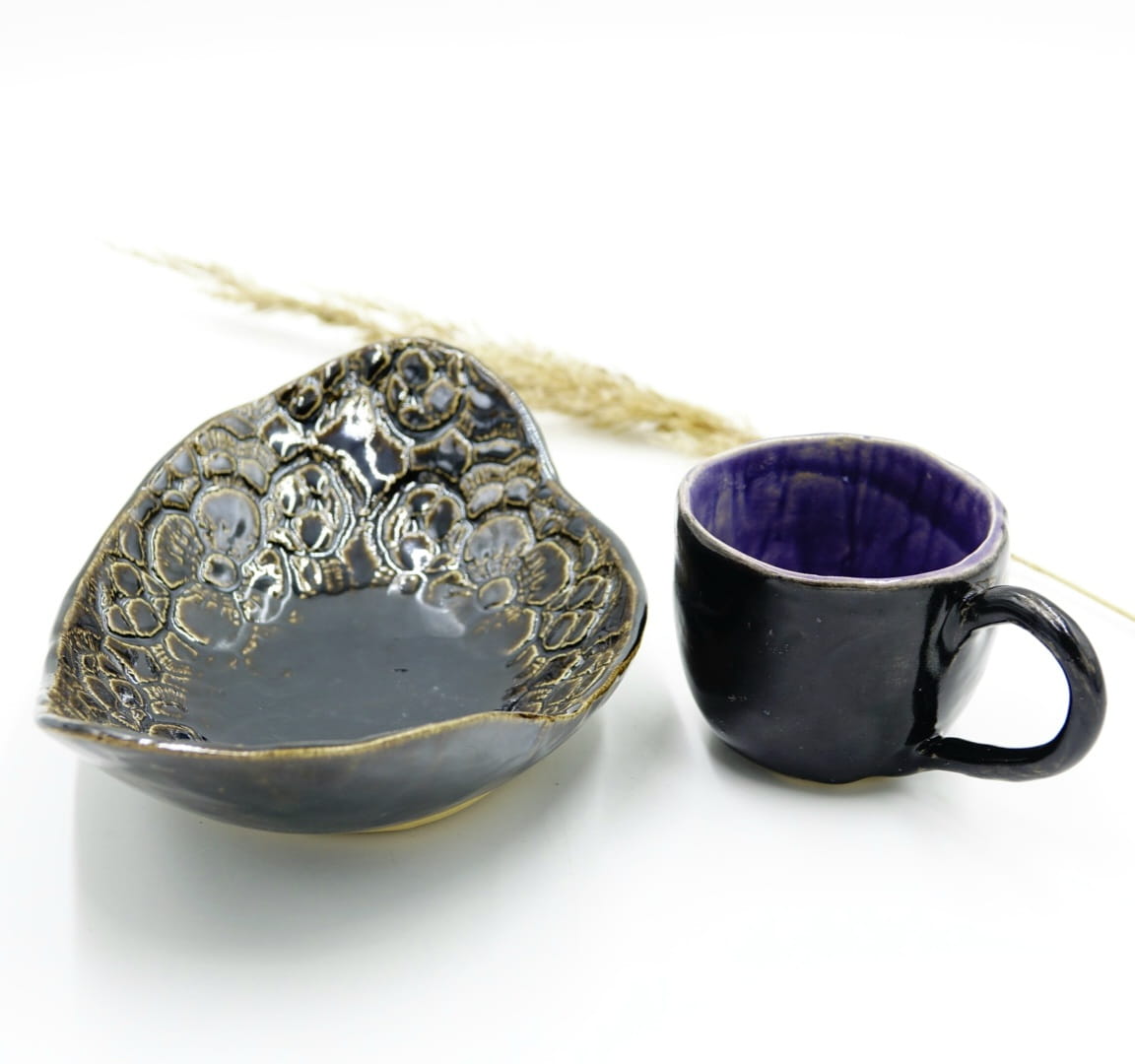Naczynia użytkowe i dekoracyjne są wykonane w pojedynczym, niepowtarzalnym wzorze.